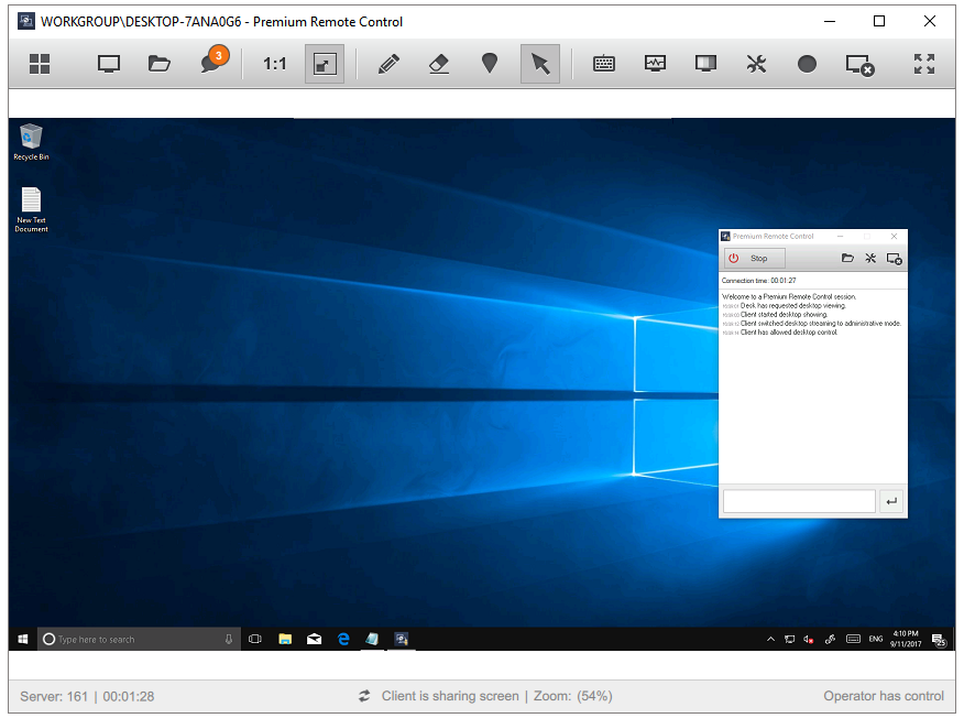 - Text-chat with a remote user has been enabled
